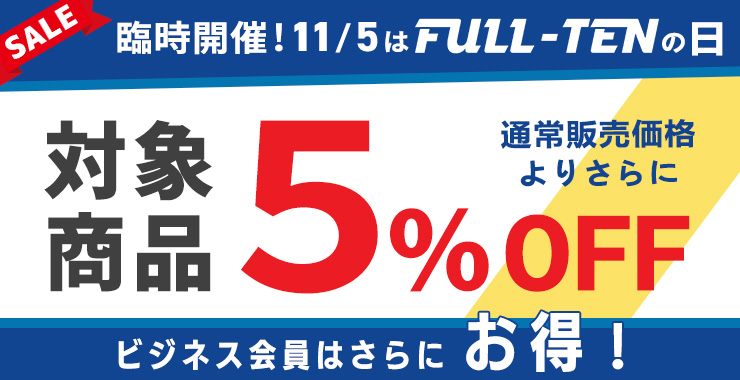 Hibino.comへのリニューアルのためFULL-TENの日は10月10日で最後となりましたが、ご利用いただいたお客様に感謝を込めて、11月5日に「臨時開催! FULL-TENの日」を開催いたします。欲しかった商品、気になっていた商品を お得にゲットできるチャンスをお見逃しなく!